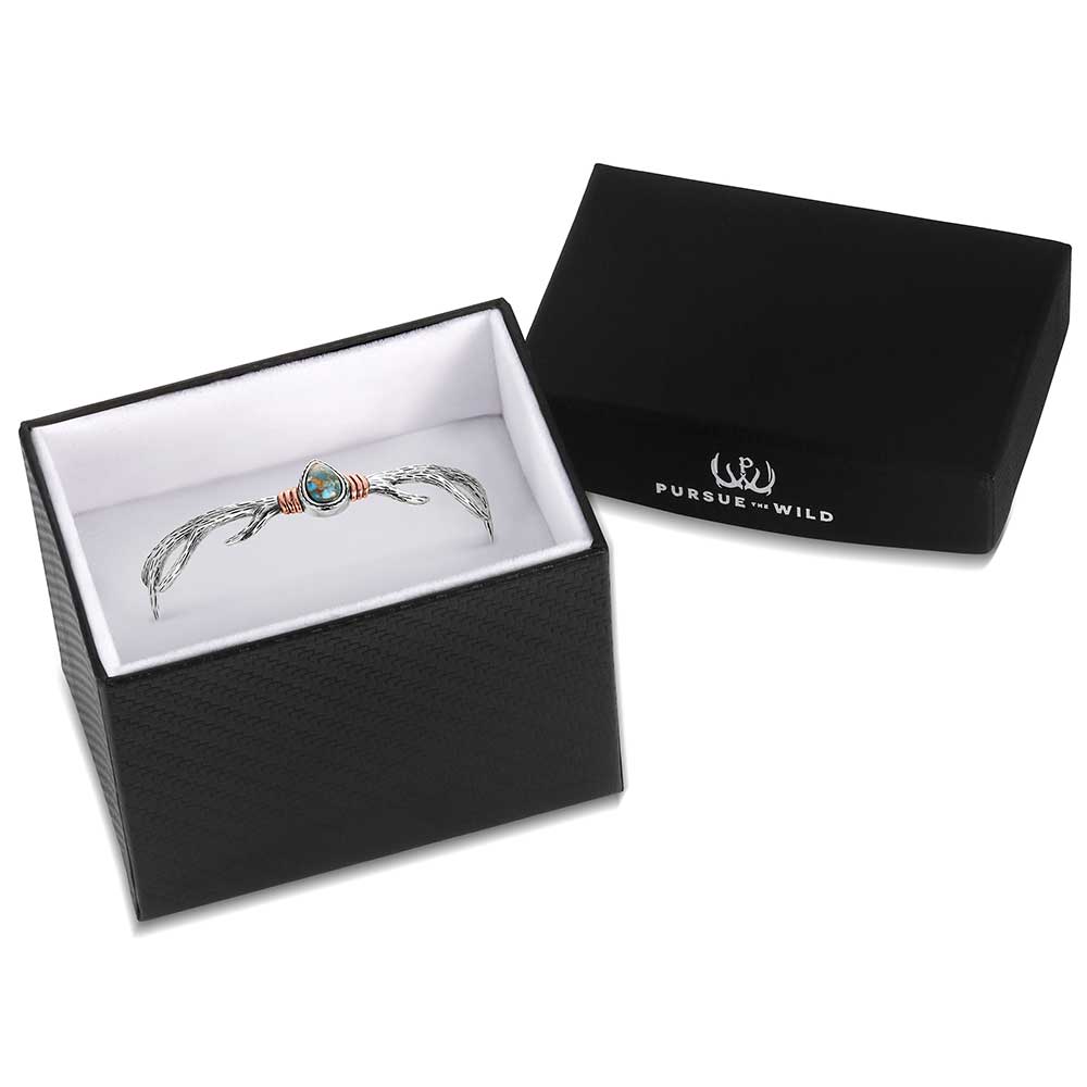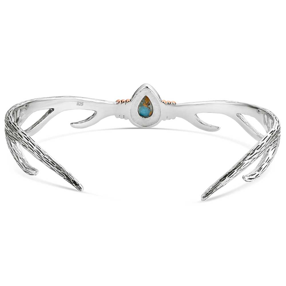 Embrace rugged elegance with the Mountain Monarch Turquoise Cuff Bracelet. Crafted from sterling silver with silver and rose gold tone accents, this adjustable open cuff features turquoise stones, subtle engraved detailing adds texture and character, creating a bold, outdoors inspired look that complements any outfit. One size fits most. Stone color may vary.