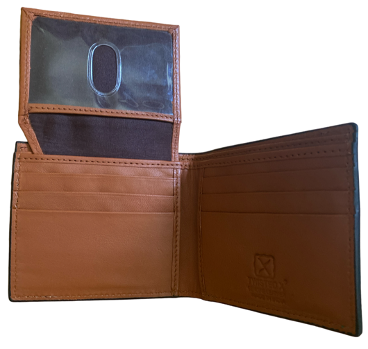 Beautiful basketweave tan bifold wallet with Aztec beaded inlay. Lots of room inside for credit cards and cash.
