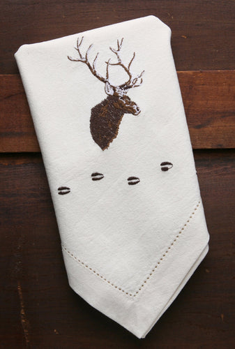 "Elk" 100% Cotton Embroidered Napkins - 4-Piece Set