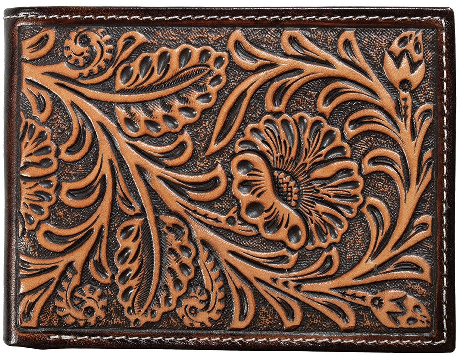 "Nocona" Western Floral Embossed Leather Brown Bi-Fold Wallet