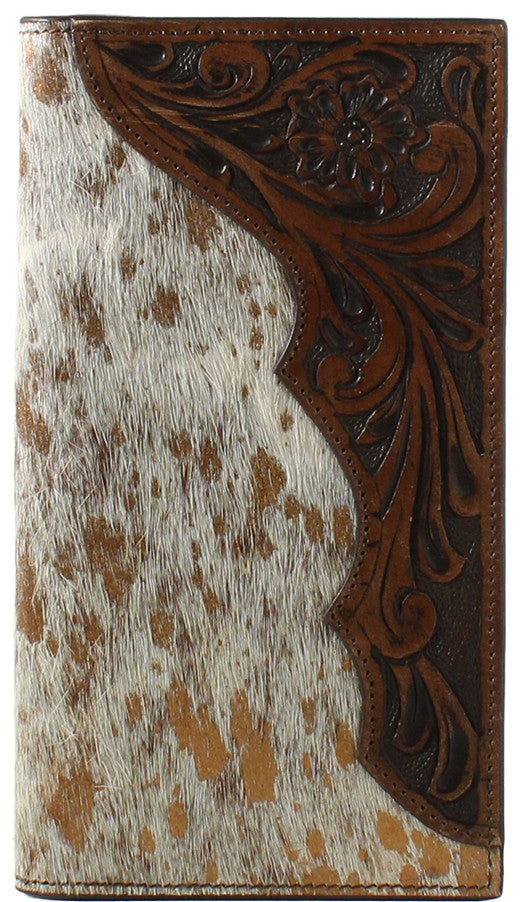 "Nocona" Western Floral Embossed Leather & Calf Hair Brown Rodeo Wallet