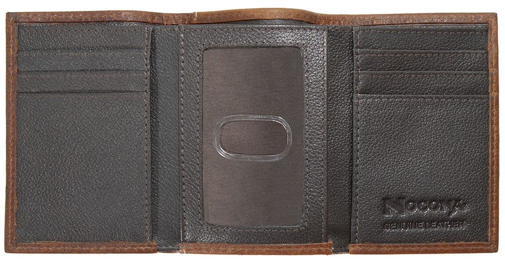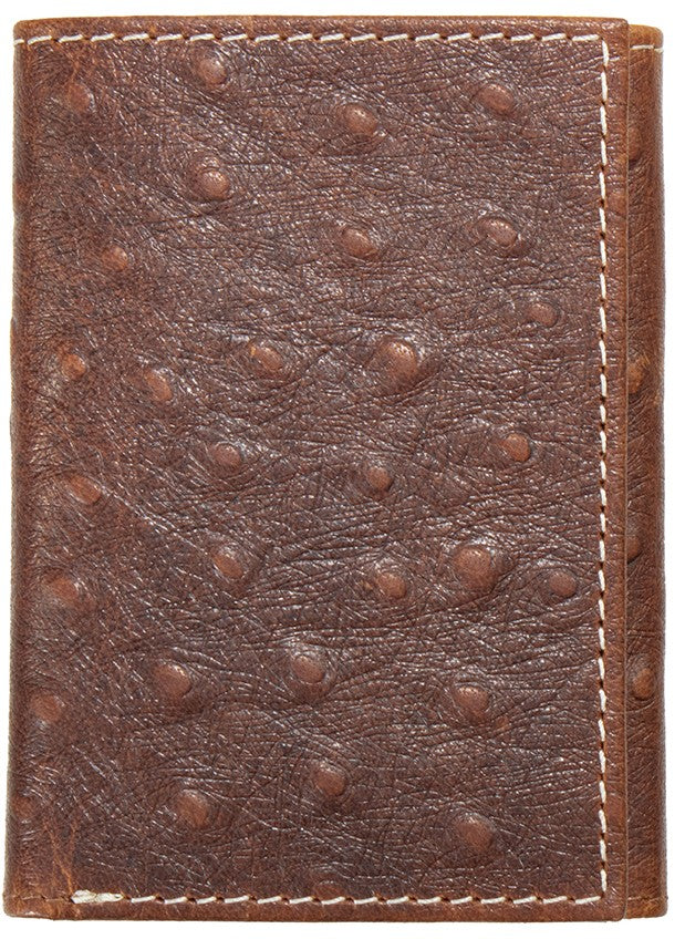 "Nocona" Western Ostrich Print Brown Tri-Fold Wallet