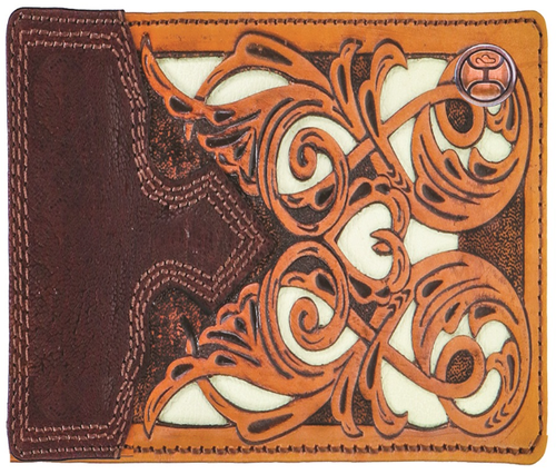 "Top Notch" Hand-Tooled Leather Bi-Fold Wallet with Ivory Leather Inlay Bullhide Overlay and Hooey Logo Rivet