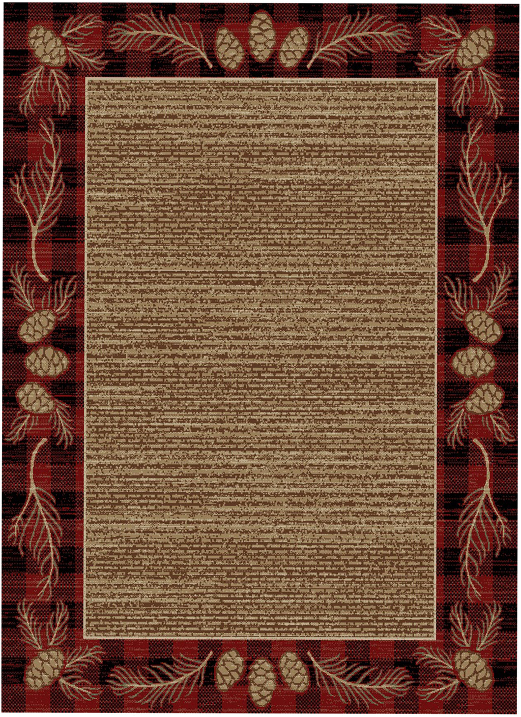 This brand new rug will look great in any lodge-themed home. This rug celebrates the Western frontier. This rug is produced from high quality heat-set synthetic fibers in a 750,000 "points per meter" construction, making this rug durable, but still enjoyably soft. Ships with 48 hours from the manufacturer